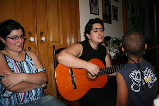 Em casa da Avó Maria, estavam uns tios da Kika e ela esteve a tocar. A Kika, a Avó Maria e a Paula estiveram a cantar...