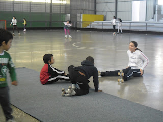 Gostei tanto que fartei-me de pedir à minha mãe para ir jogar também. Pedi tanto que a mãe concordou e, agora, lá ando eu a aprender a patinar, para depois poder jogar hóquei em patins.